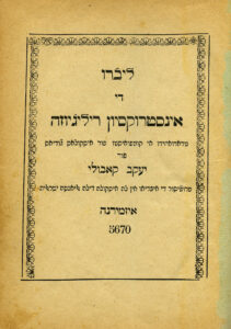 Livro de embezar las linguas ingleza i yudish : muy premorozo i provechozo para todos los djudyos espanyoles imigrados o ke pensan imigrar aki en Amerika View Item