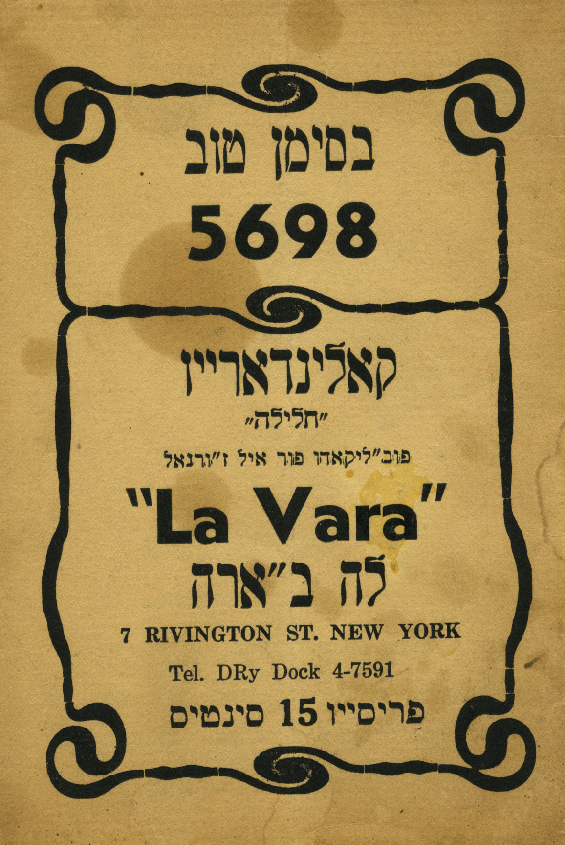 Be-siman tov 5698 : Kalendario «halila»
