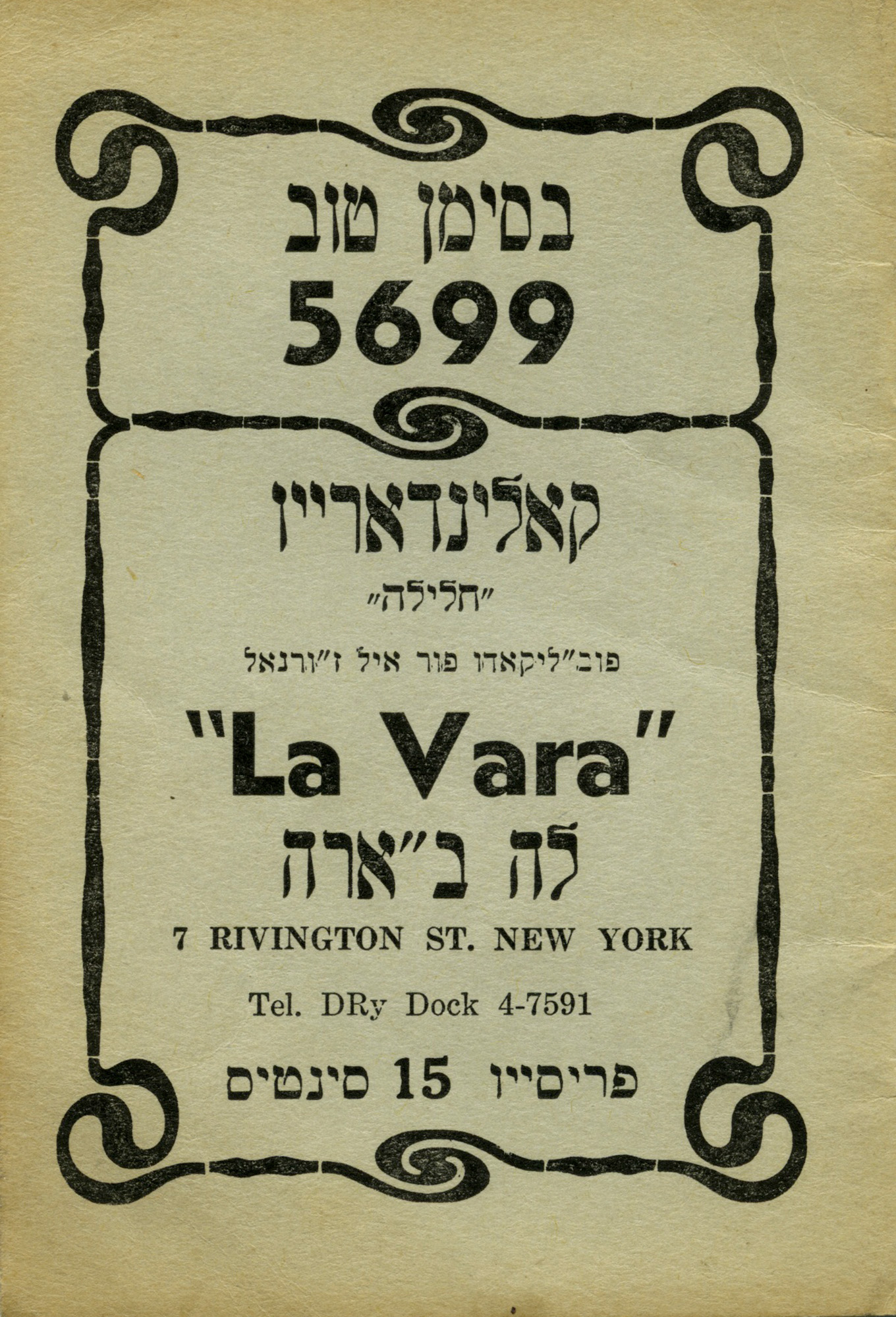 Be-siman tov 5699 : Kalendario «halila»