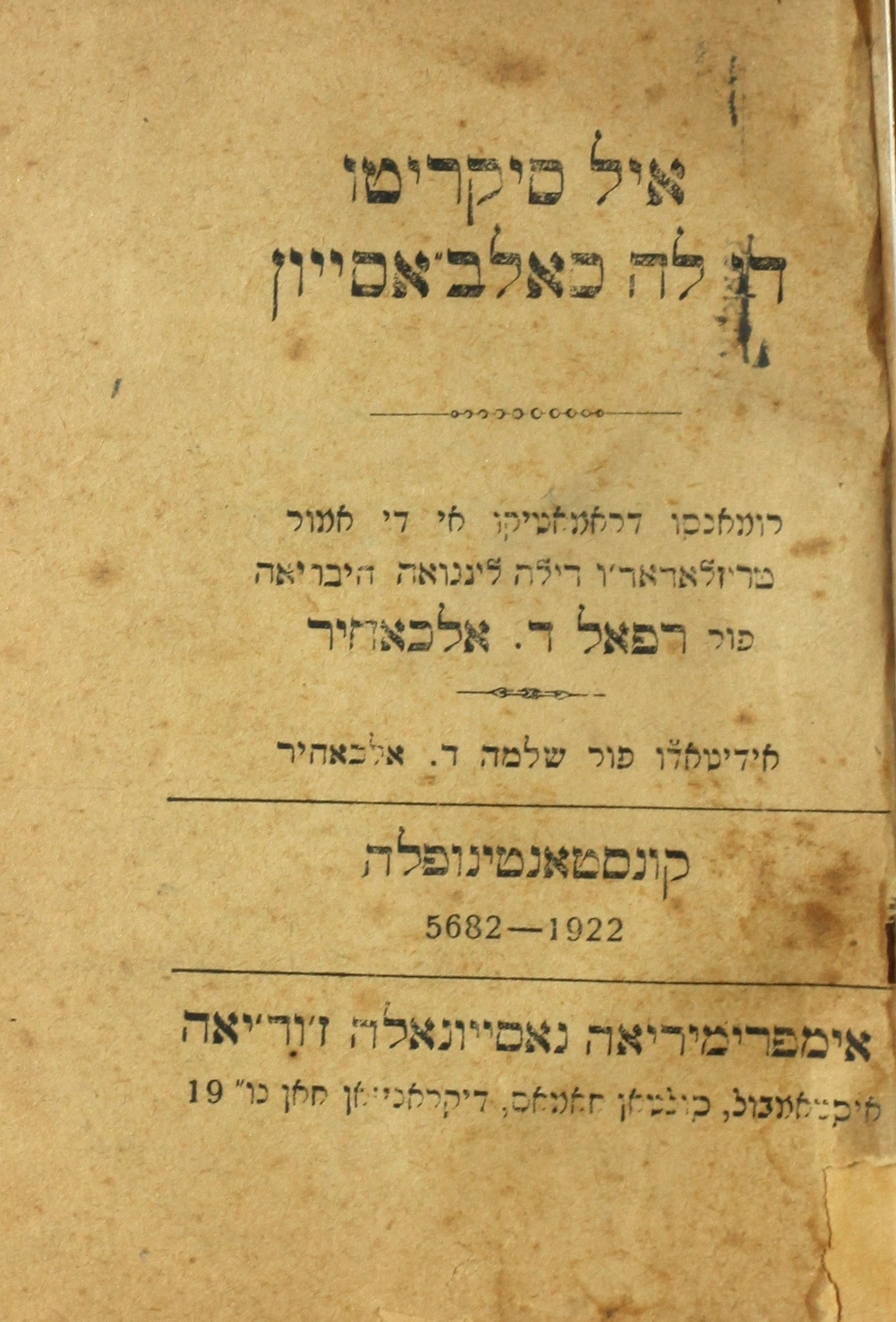 Alkaḥir, Shelomoh D.