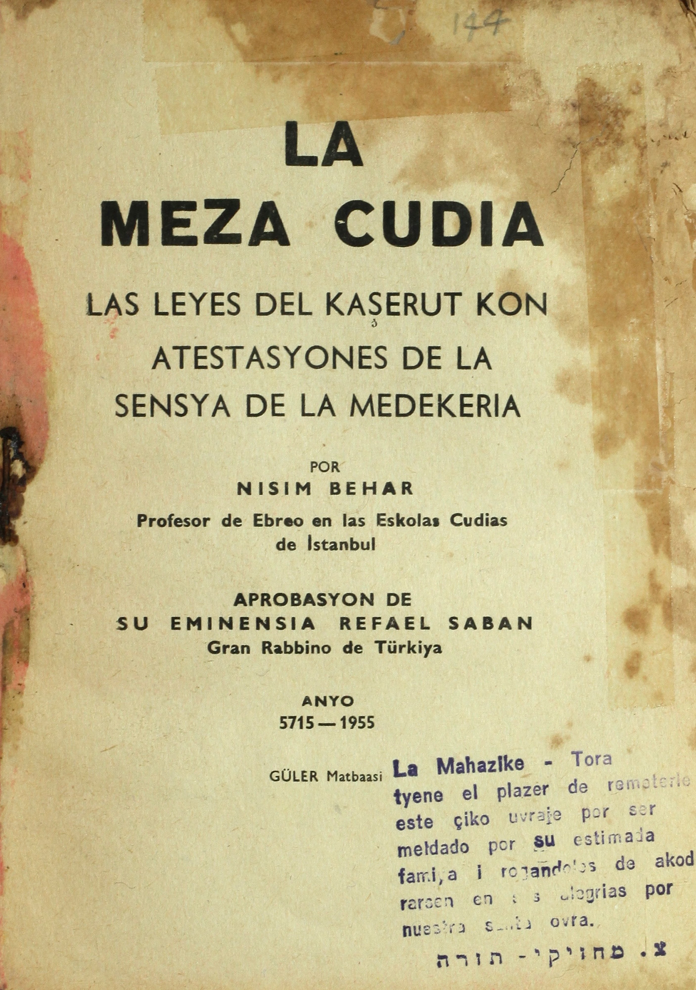 La Meza Cudia las leyes del kaşerut kon atestasyones de la sensya de la medekeria