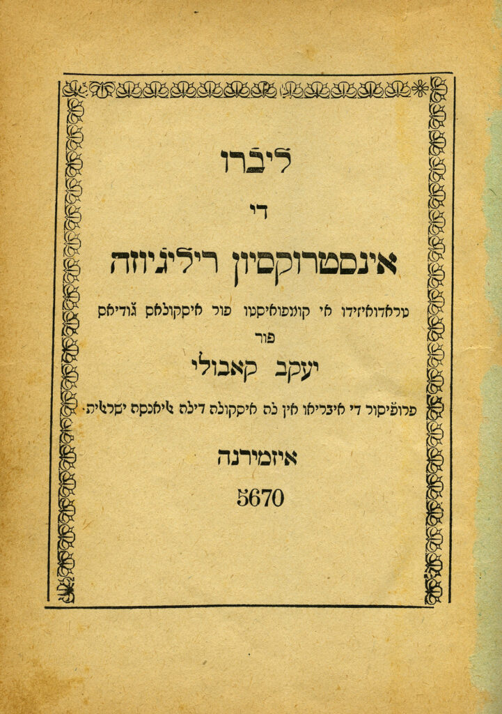 Livro de instruksion reližioza: traduizido y kompuesto por eskolas Ǧudias de Oriente