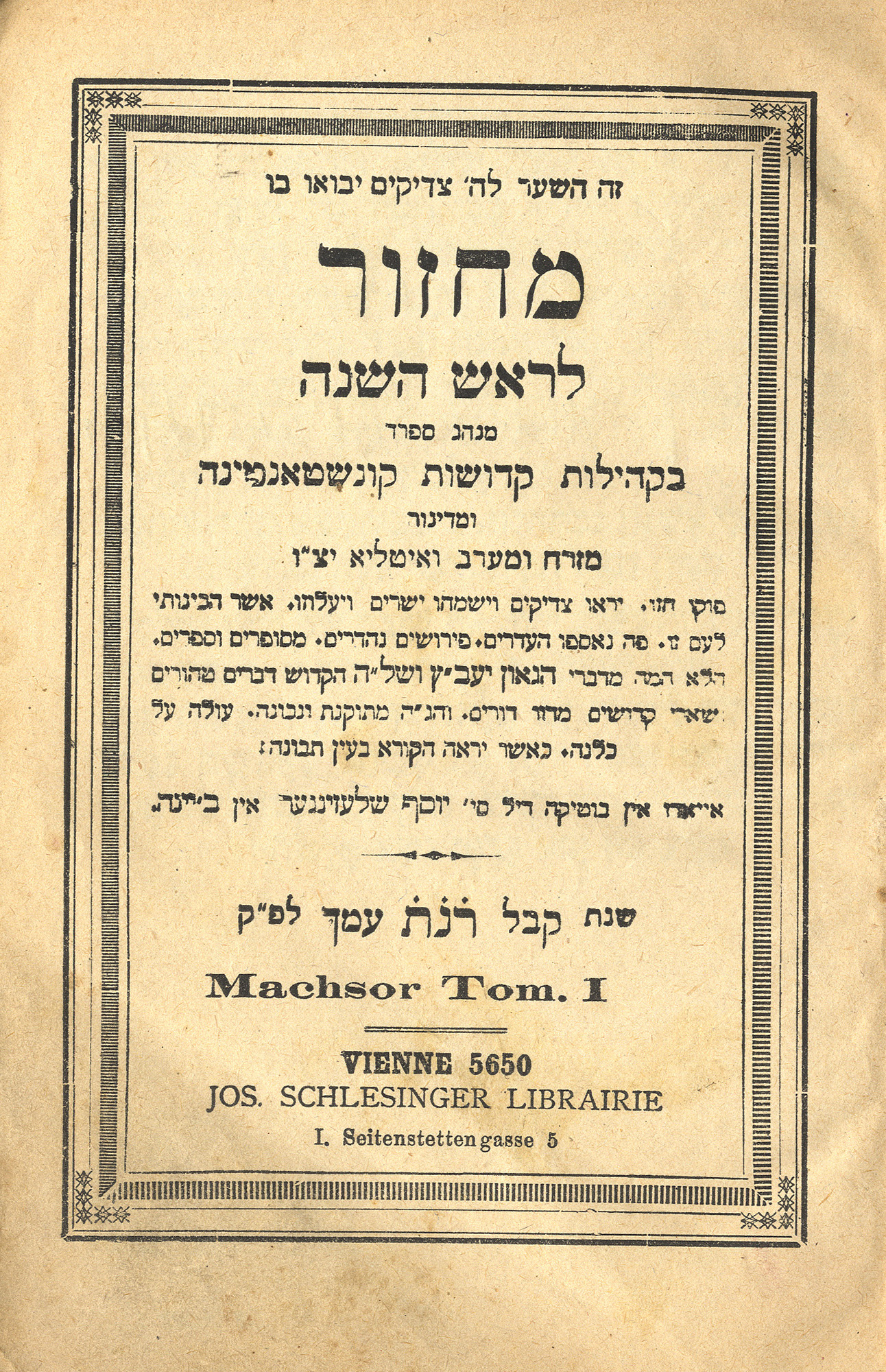 מחזור לראש השנה : מנהג ספרד בקהילות קדושות קונשטאנטינה
