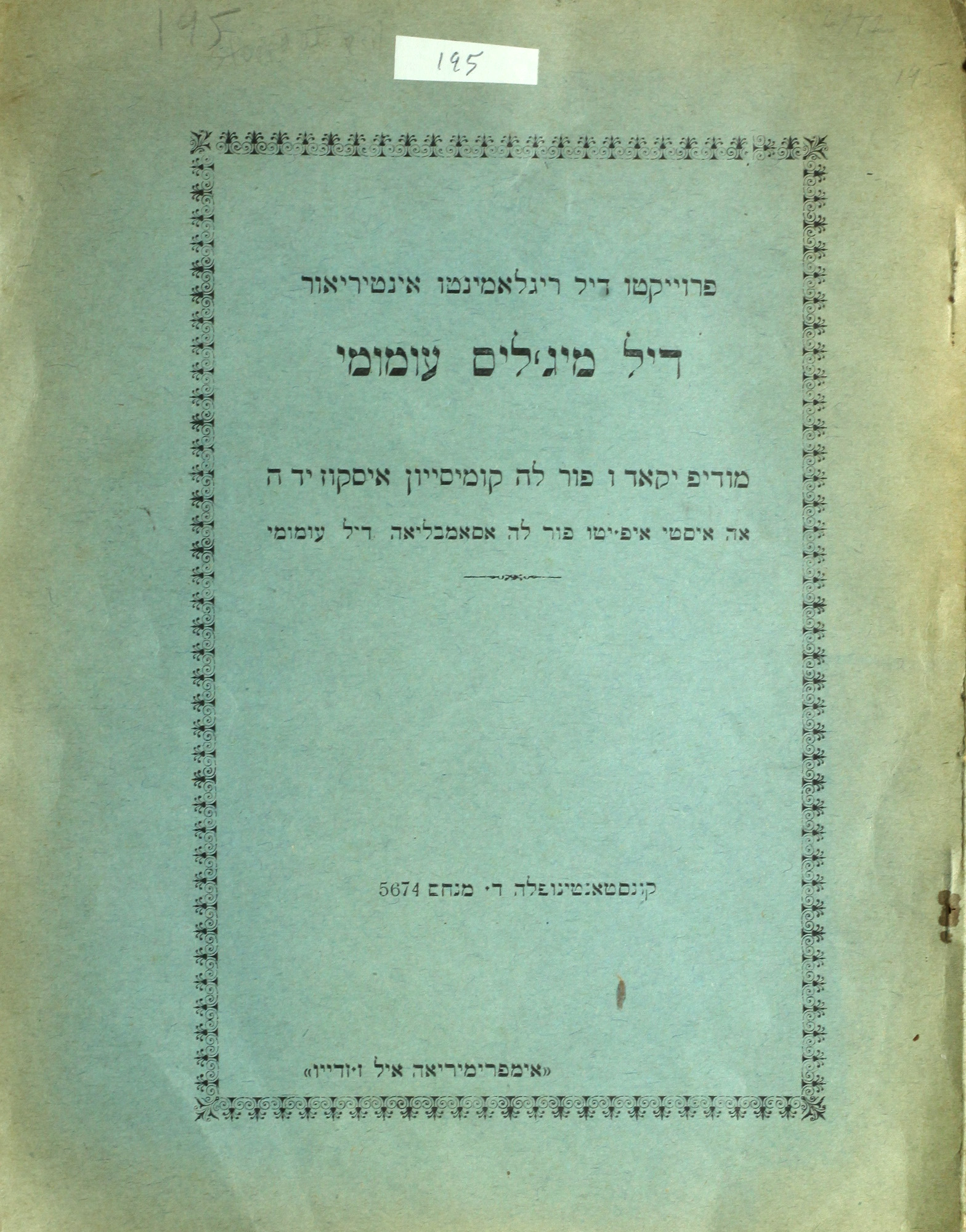 Proyeḳṭo de reglamenṭo inṭerior del Mejlis ‘Umumi