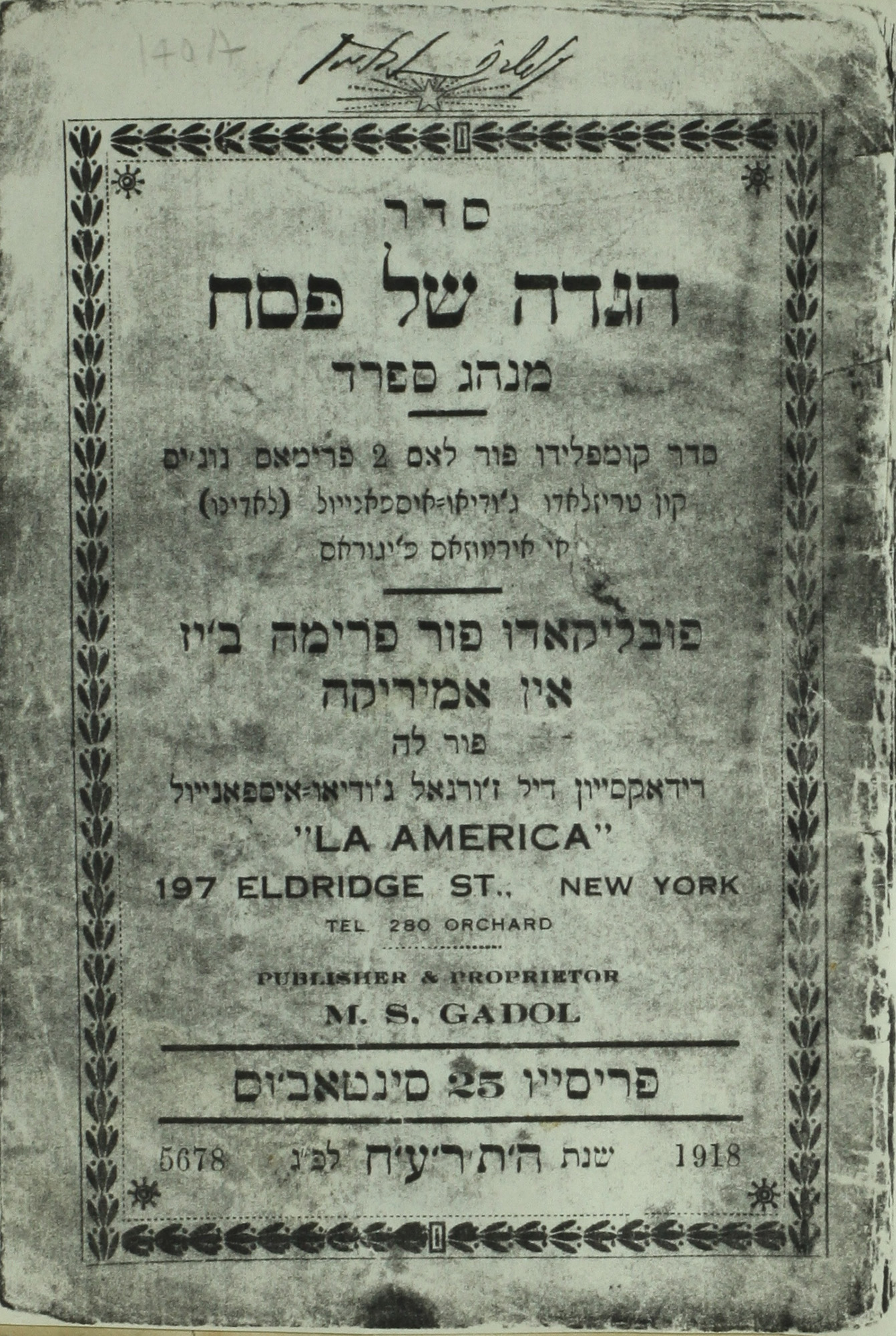 Seder Agada shel Pesah : minag Sefarad