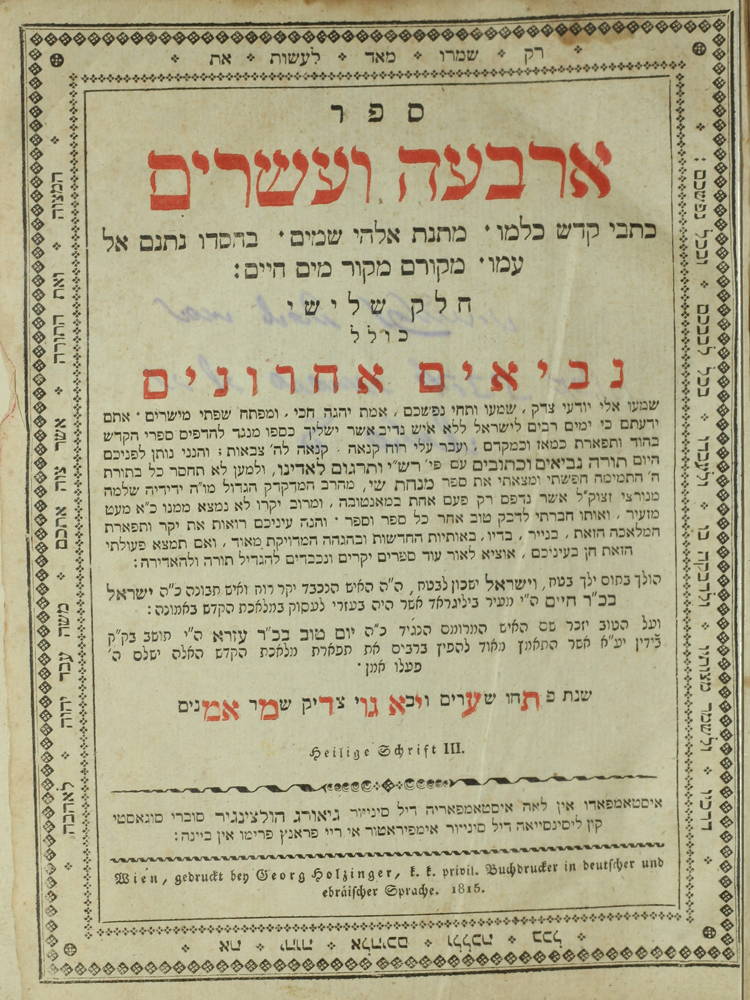 Sefer arba’ah ve-esrim : helek shelishi kolel Neviim Ahronim