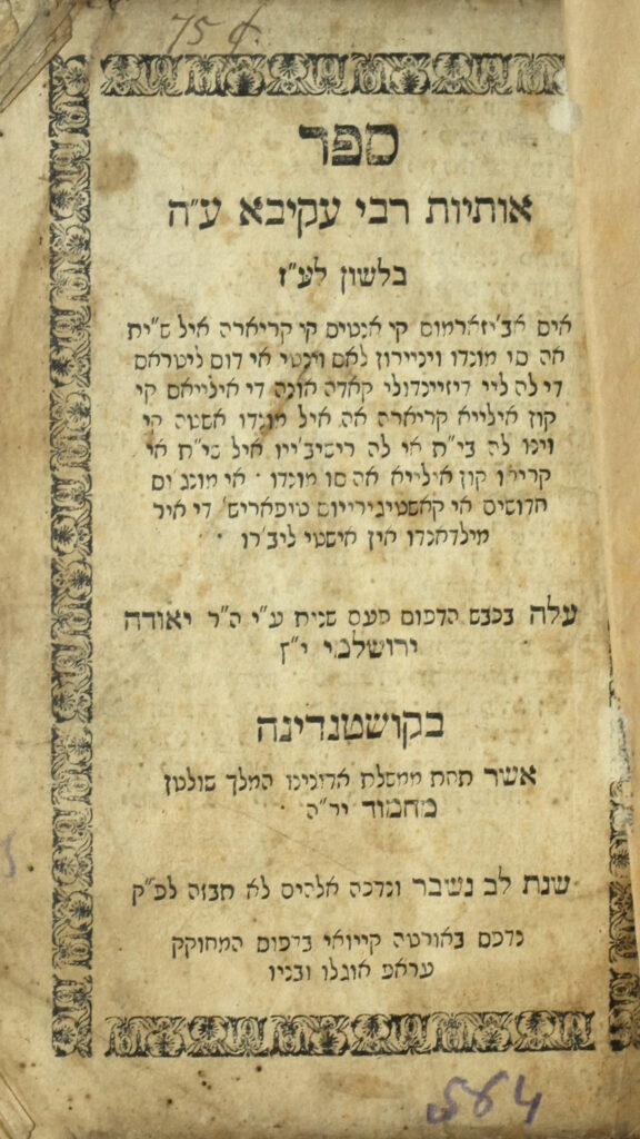 ספר אותיות רבי עקיבא ע''ה : בלשון לע"ז