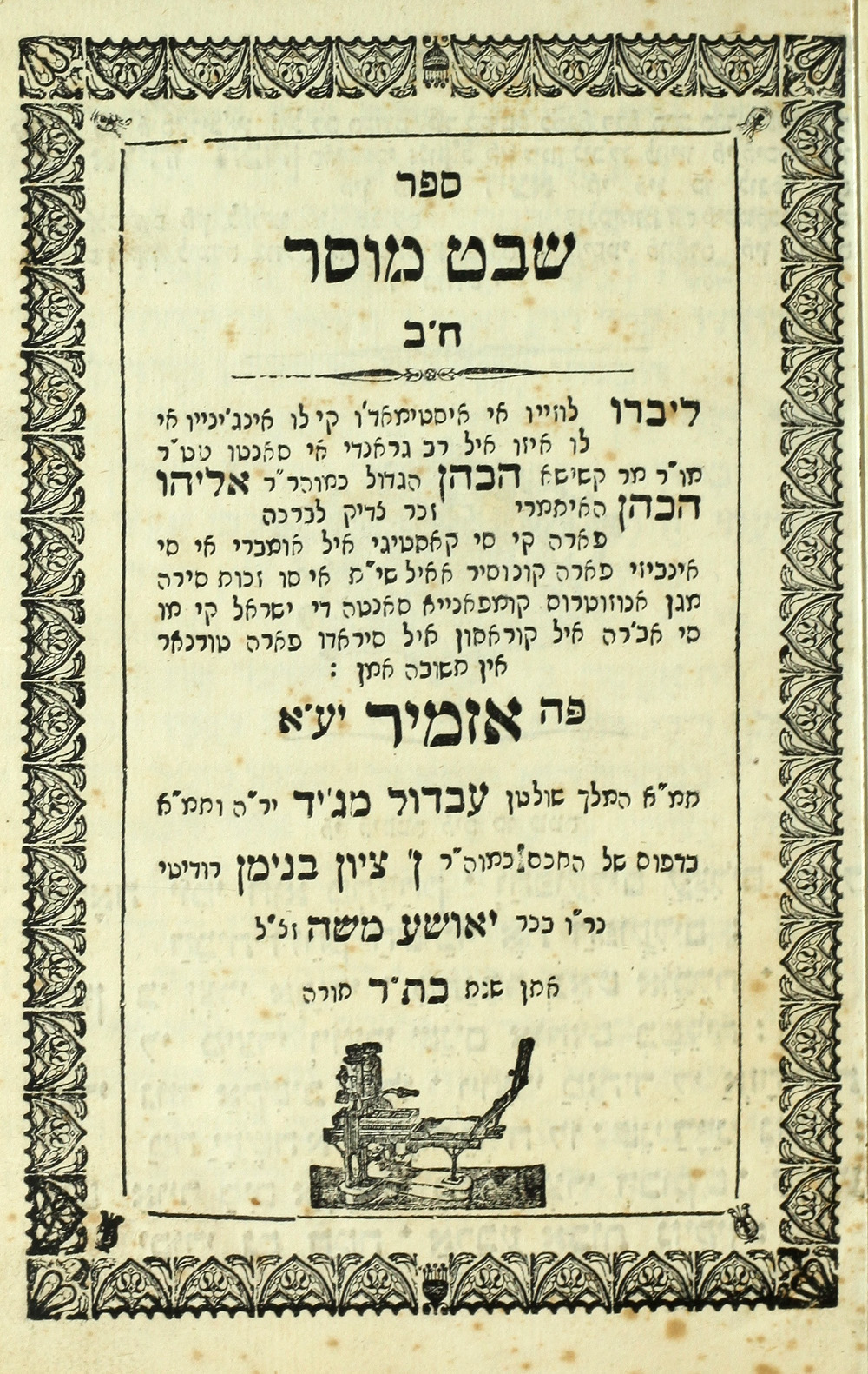 Sefer shevet musar : helek bet