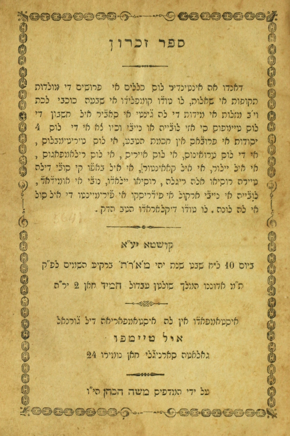 Sefer Zikaron : dando ah enṭender los kelalim i perushim...