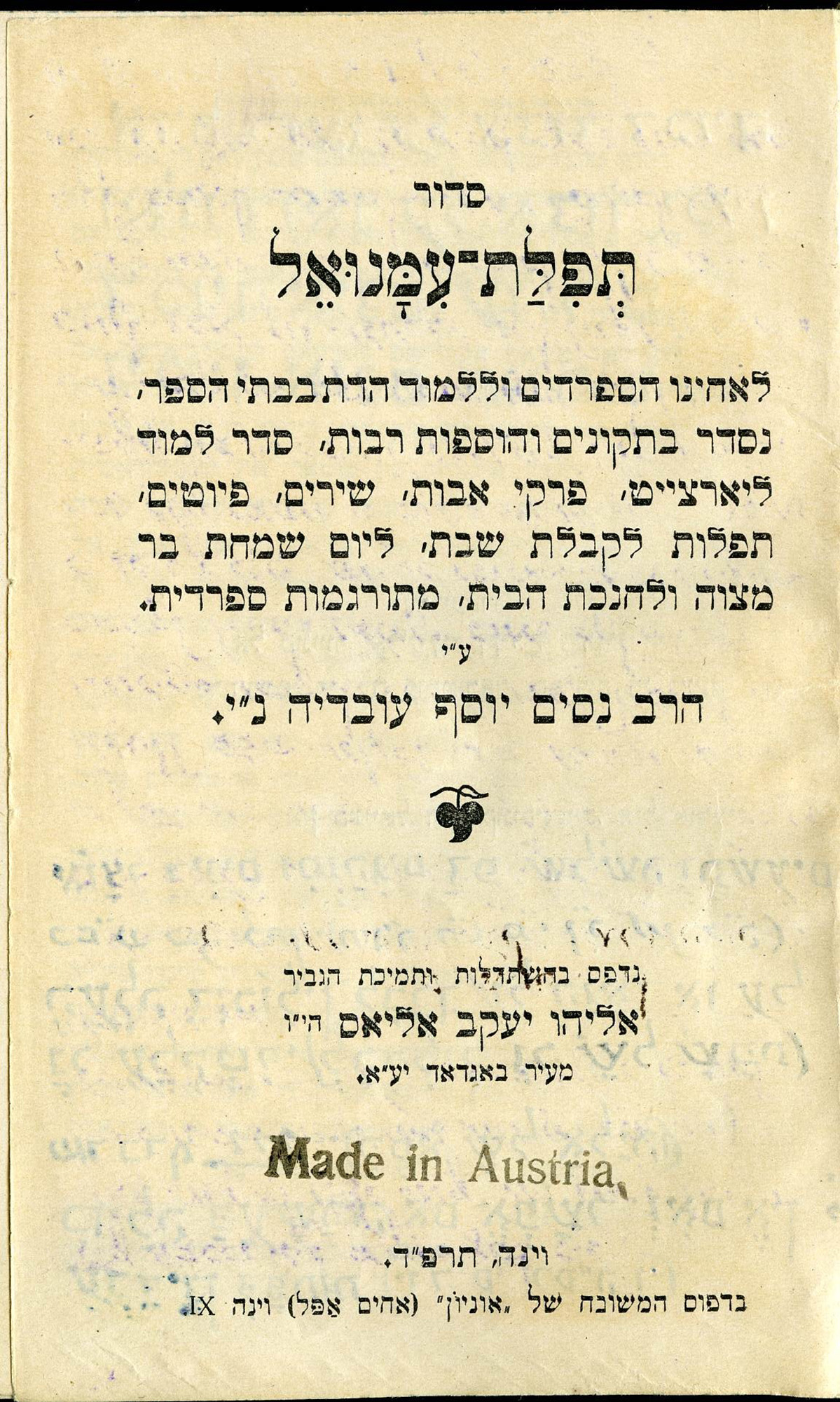 סדור תפלת עמנואל : לאחינו הספרדים וללמוד הדת...